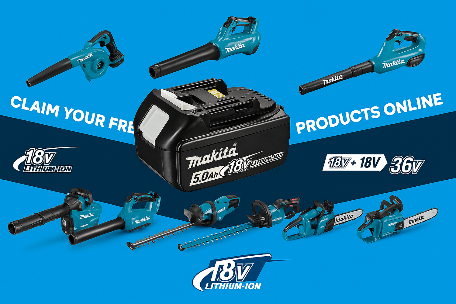 Claim your free Makita tools online with every 18V LXT 5.0Ah battery. More power, longer runtime, trusted performance.